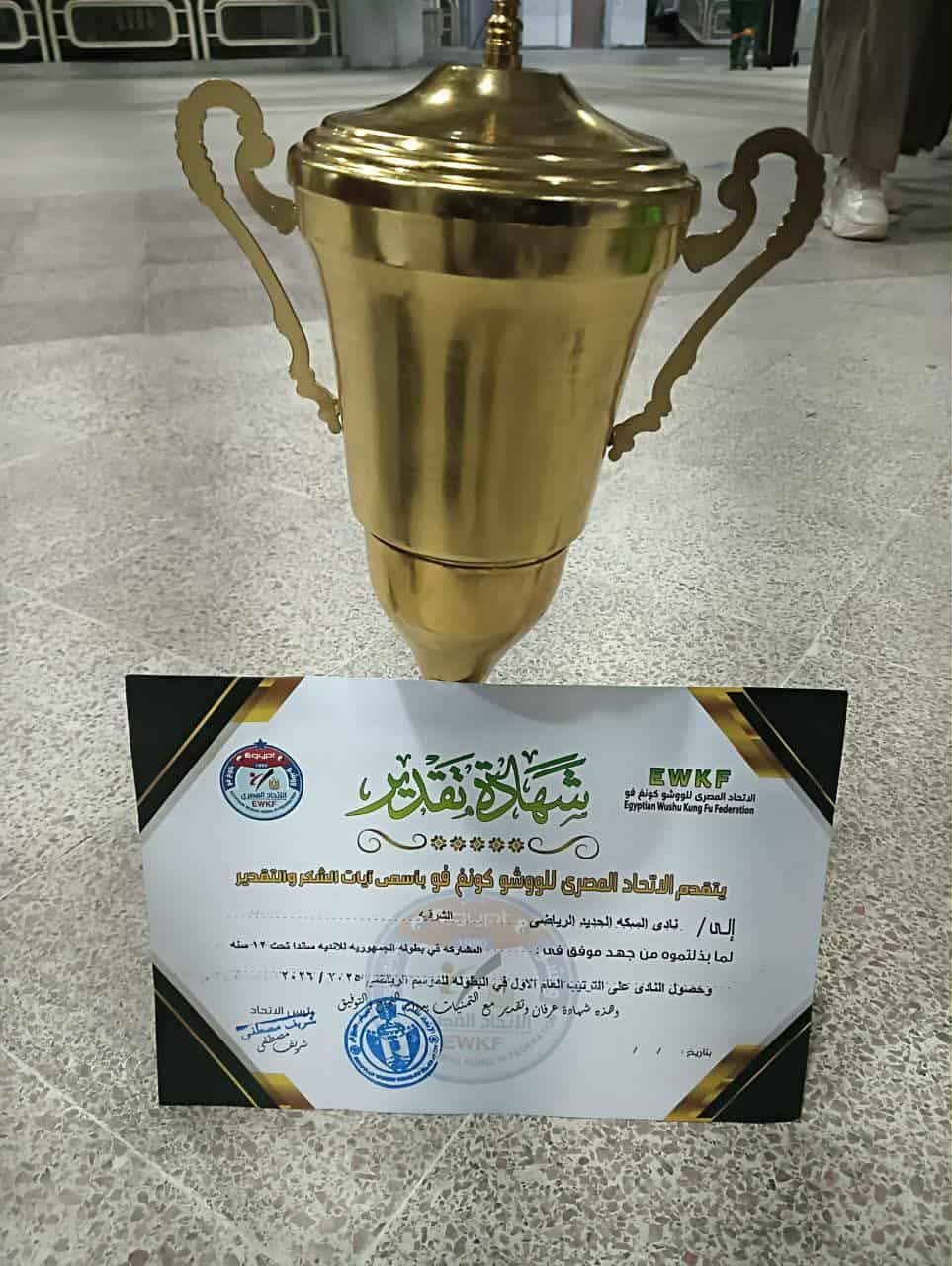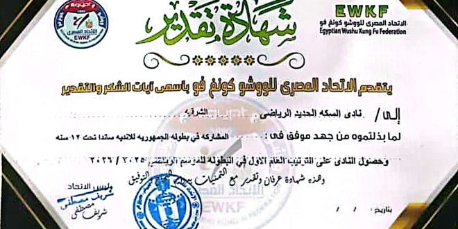 بعث الاتحاد المصري للوشو كونغ فو ببرقية تهنئة وشكر وتقدير، لمجلس إدارة نادي السكة الحديد ، برئاسة المحاسب محمد بدوي ، بمناسبة حصول النادي على المركز الأول ، في بطولة الأندية ساندا تحت سن ١٢ سنة والتي شارك فيها النادي .